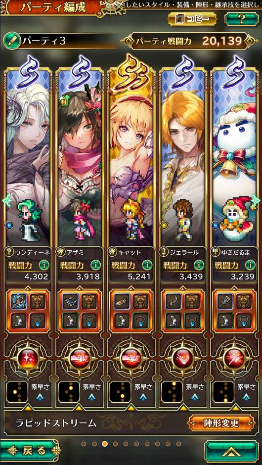 大雑把にどのくらい成長するか見てみるかと周回開始前の戦力。